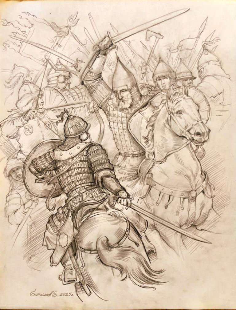 Куликовская битва. Эскиз. Художник Е.Ю. Емельянов. 2025 г.